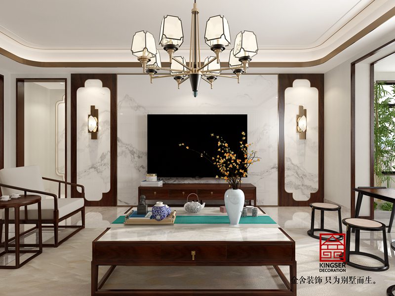 榮盛華府190平方江南新中式客廳裝修設(shè)計(jì)