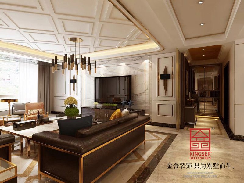 衡水漢王府別墅裝修現(xiàn)代法奢風(fēng)格客廳效果圖