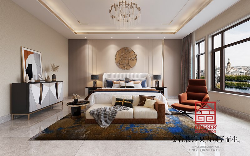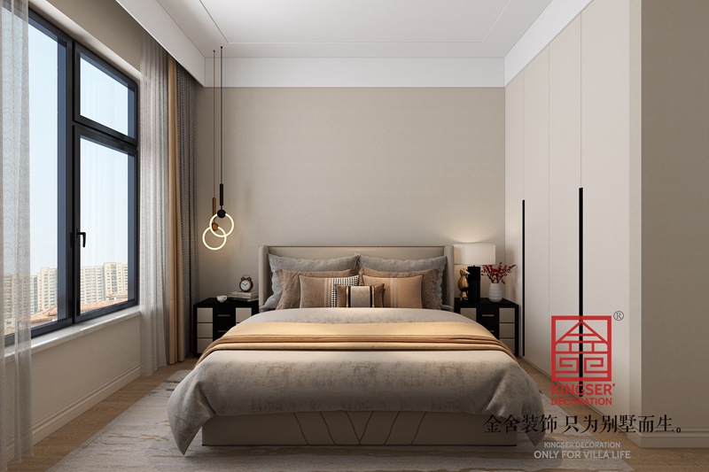 衡水漢王府別墅裝修現(xiàn)代法奢風(fēng)格臥室效果圖