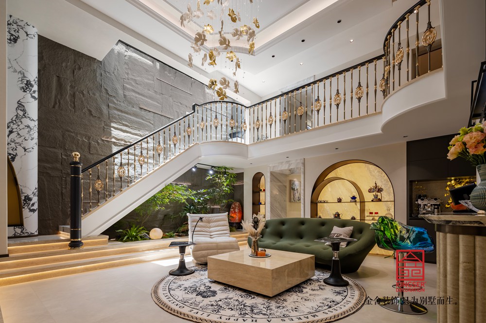 沙河自建別墅400平米現(xiàn)代簡約風格裝修-客廳