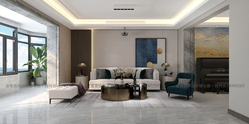 榮盛華府現(xiàn)代輕奢效果圖-客廳