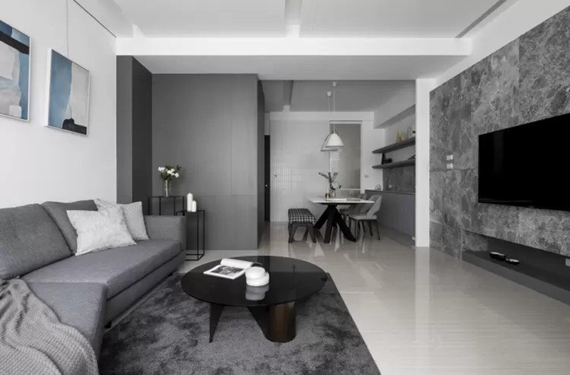 灰白紋理的大理石電視背景墻簡約大氣,沒有過多的裝飾,使空間充滿簡潔高雅的品質(zhì)感。