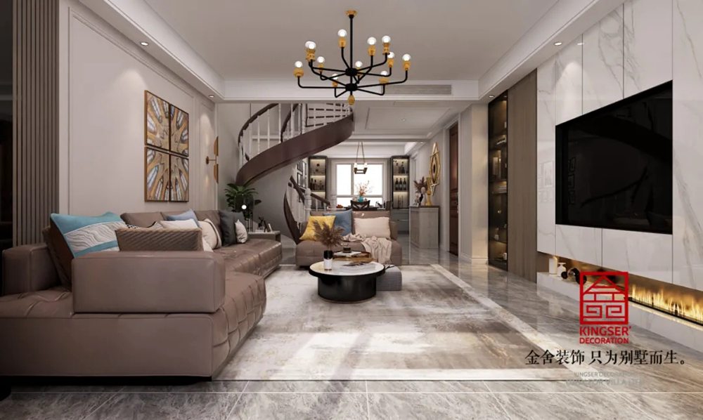 此案例為石家莊金舍裝飾-東南智匯城191平米現(xiàn)代風(fēng)格裝修效果圖賞析。家居設(shè)計(jì)需要的是形式還是本質(zhì),也許仁者見仁。有人說現(xiàn)代主義是功能主義,是工業(yè)社會(huì)的產(chǎn)物,是當(dāng)年包豪斯學(xué)派提倡突破傳統(tǒng), 創(chuàng)造革新的延續(xù)。然而新總是含混不清,它知道自己不能落后,但是卻也從來(lái)沒有傳統(tǒng)。我們不排斥深色調(diào)與質(zhì)感材質(zhì)的應(yīng)用,深淺色調(diào)的完美搭配更能突出清爽舒適的感覺!其次則是家具,幾何圖案的布藝沙發(fā)就不多說了,簡(jiǎn)約文藝的家具單品效果更是讓氛圍顯得雅致不少!