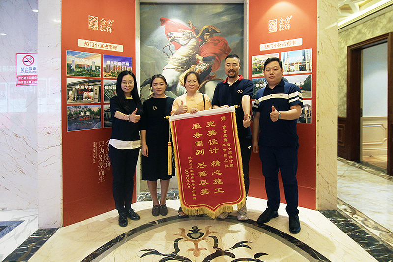維多利亞三期的米女士的錦旗!并述說了在裝修過程中工程人員認真負責盡心盡職的態(tài)度,特為此送上錦旗表示感謝!金舍裝飾曹小雨設計師代表公司接受錦旗并表示,用心服務客戶是公司的宗旨,對于施工質量的保證及售后的服務是一個裝飾公司應具有最基礎的信譽保障。