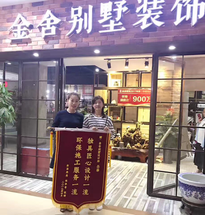 設(shè)計師呂菲錦旗。呂菲設(shè)計師的設(shè)計理念非常超群,在跟