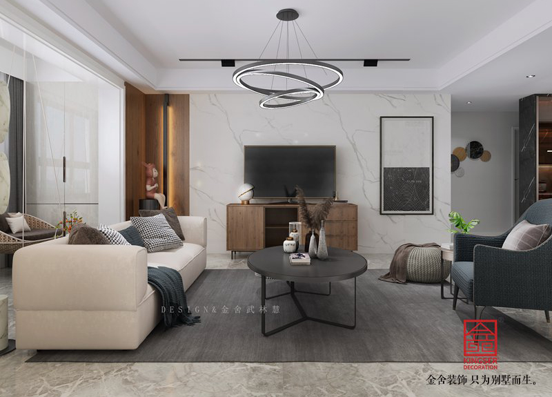 設(shè)計師根據(jù)客戶的要求對空間劃分上著重下手,確??蛻艟幼∈嫘模浯尉褪窃谟惭b和軟裝上用心去搭配,通過溝通幾次確定整個方案,使客戶滿意。