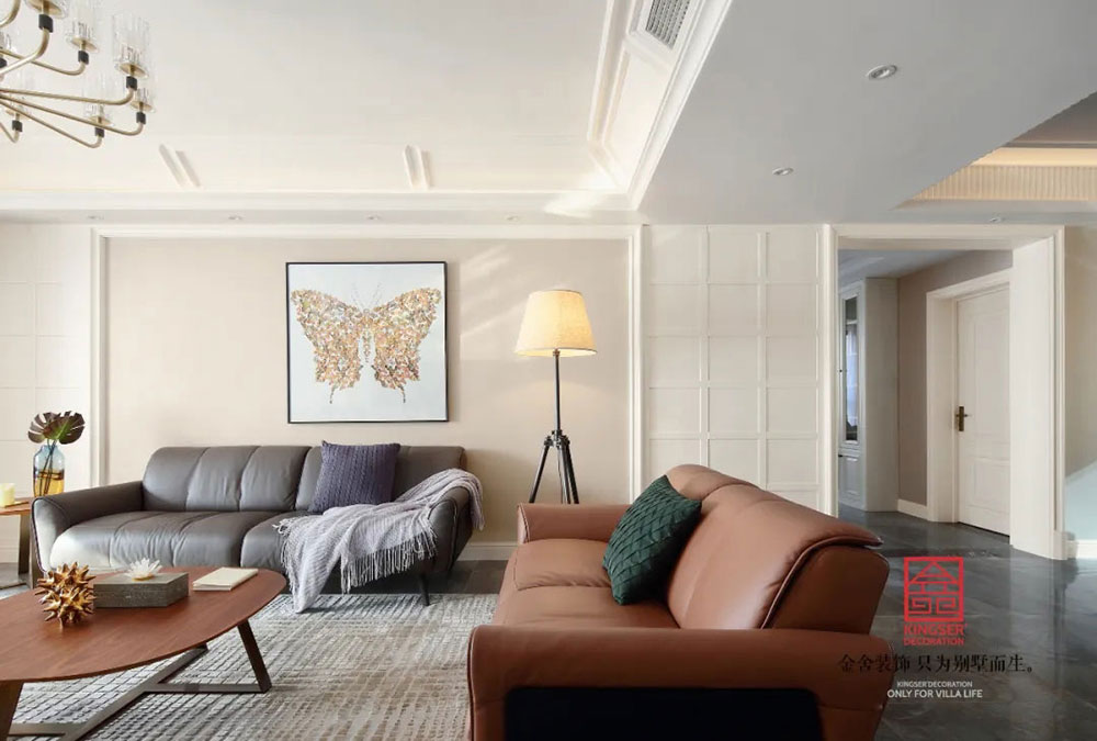 此案例為石家莊金舍裝飾-奧北公元165平米輕奢風(fēng)格裝修實景圖。生活的紛擾,工作的繁雜,多少人在渴望去尋找片刻的清凈時光?!篙p奢風(fēng)格」,恰好迎合了這個時代人們的需求,刪繁就簡的期許,留一片純凈、清靜、自然的空間,一片讓人們沉醉的自我世界。