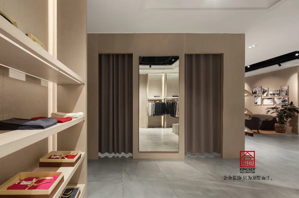 多個(gè)空間內(nèi)都設(shè)置了試衣間,保證試衣間的使用頻率,同時(shí)在空間內(nèi)刻意造成分流,規(guī)劃客戶的動(dòng)線,保證購買區(qū)域內(nèi)的空間不會(huì)出現(xiàn)人流的聚集等候。