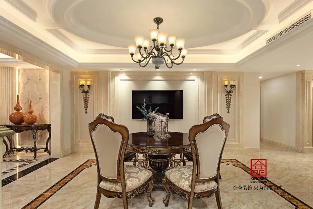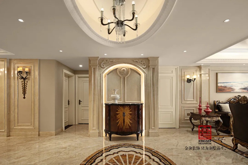 此案例為石家莊金舍裝飾-御河上院220平米歐式風(fēng)格裝修實(shí)景。對于歐式的風(fēng)格來說,元素的運(yùn)用大部分出自于之前的宮廷,從凡爾賽宮到各種歐倫古堡,近千年來的輝煌締造了不斷衍生的文明和欣欣向榮的文化。