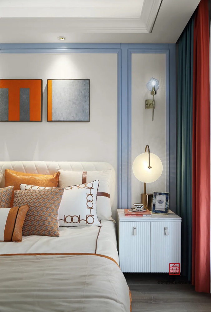 臥室的風(fēng)格,相較于客廳更加的隨意一些,整體色彩與家居的搭配,加上清新曼妙的窗簾,很好的過度了整體色彩。