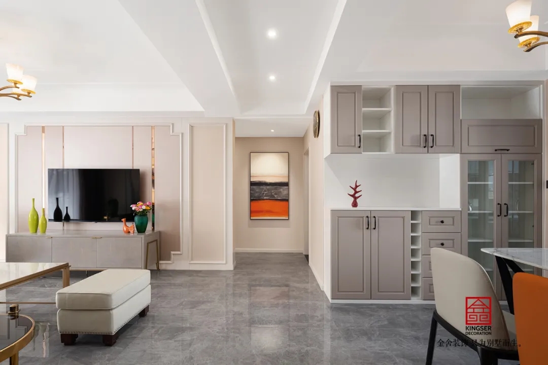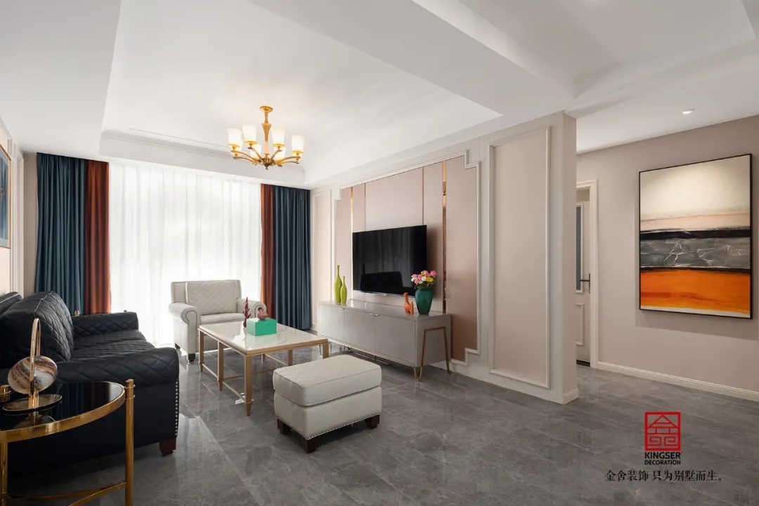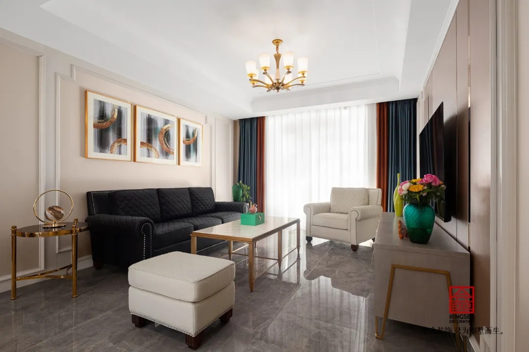 此案例為石家莊金舍裝飾-維多利亞三期120平米美式裝修實景。凡是設(shè)計,皆涉及色彩,或許濃烈而充滿激情,或許素淡而沉靜自若,陸離斑駁間,演繹出城市的性格。色彩里所蘊藏的豐富想象力,則渲染著家居生活的底色。