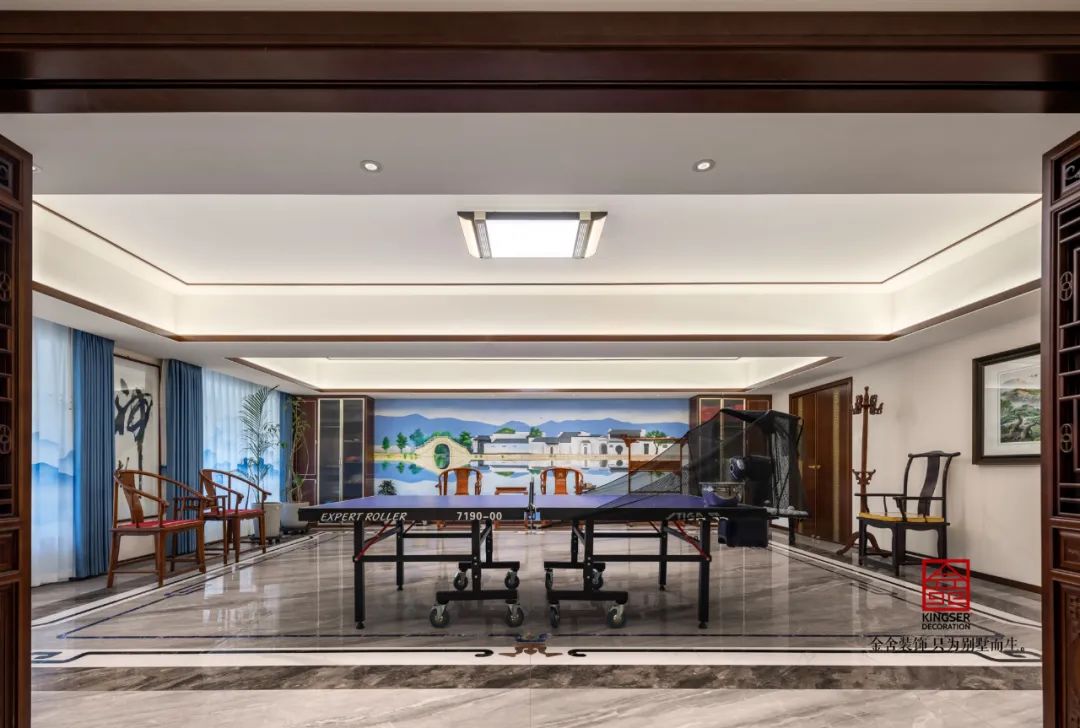 一個(gè)家居會(huì)所最不能缺少的就是娛樂的空間,乒乓球臺和影音室,晨沐朝霞、夜觀星斗,總有人想要脫開繁復(fù)的人事交集,體味中式元素之廣博。