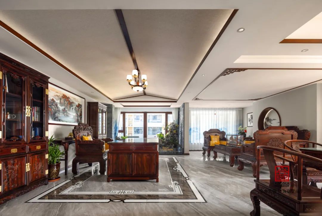 高山流水 徽墨描金,依山造屋,近水結(jié)村,徽派建筑總能給人一種天人合一的自然美學(xué)意義。依山造屋,近水結(jié)村,徽派建筑總能給人一種天人合一的自然美學(xué)意義。 本套家居會(huì)所設(shè)計(jì)以徽派風(fēng)格為主軸,融合傳統(tǒng)與現(xiàn)代元素,旨在打造一處集會(huì)客、辦公、娛樂、休息于一體的雅致空間。設(shè)計(jì)過程中,通過細(xì)膩的工藝、沉穩(wěn)的色彩以及獨(dú)特的空間布局,展現(xiàn)出中式風(fēng)格的典雅與韻味。