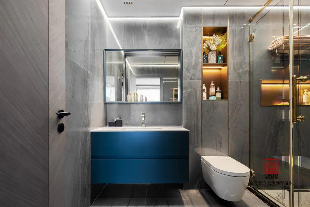 木墻板與大理石的穿插,克萊因藍(lán)的桌椅也是讓整個空間獻(xiàn)出一種青春的氣息,圓形的餐桌,簡單的吊燈,生活的意趣隨時都充滿整個空間。
