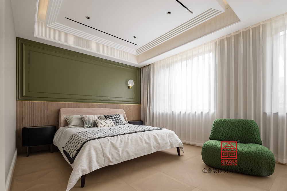 三樓主臥空間納入窗外四季風(fēng)光意境,簡潔、舒適、寧靜,在這個臥室體現(xiàn)得淋漓盡致,設(shè)計就該更于回歸生活,并非不食煙火,而是剔除了方方面面的冗雜,以更鮮明更清晰的方式去表達出眼下的狀態(tài)。