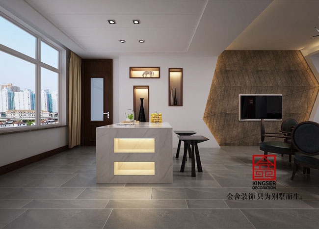 此方案為石家莊金舍裝飾-星河盛世300平米輕奢風(fēng)格裝修效果圖。設(shè)計(jì)風(fēng)格為自然風(fēng)輕奢。其風(fēng)格特點(diǎn)主要是自然簡潔。自然的木質(zhì)色調(diào)使居室充滿休閑的氛圍,是快節(jié)奏都市生活的休恬港灣。最為大膽突出的處理就是把客餐廳設(shè)計(jì)為開放式的大空間。布置簡潔,以灰,黃為主調(diào),電視墻處理相當(dāng)簡潔而富品味,展現(xiàn)出一個(gè)極為休閑的氛圍。整體給業(yè)主提供了一個(gè)渾然一體、自然舒適的居住環(huán)境!