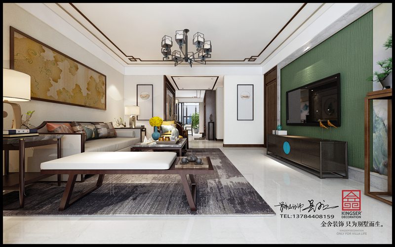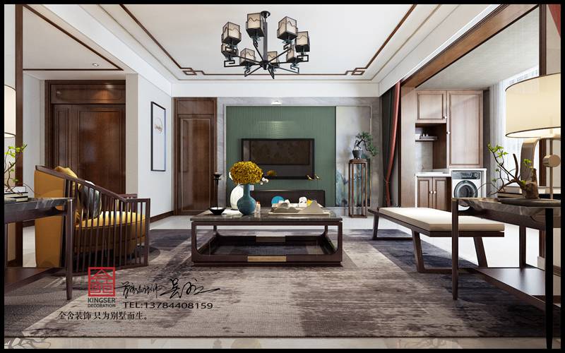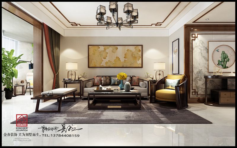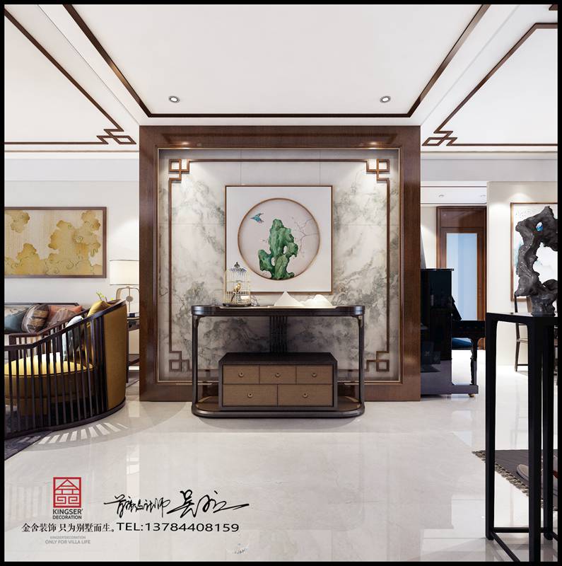本方案為石家莊金舍裝飾-榮盛華府178平米新中式風(fēng)格裝修效果圖。風(fēng)格為新中式,倦鳥歸林,魚翔淺底,落葉歸根,這都是對