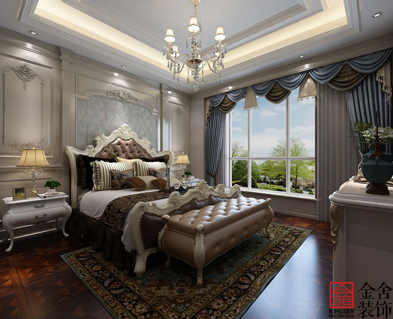 臥室:美式風(fēng)格臥室通常是以功能性和使用舒適度為主要設(shè)計(jì)。在臥室中飾品大多都是用的成套布藝來裝飾空間的。