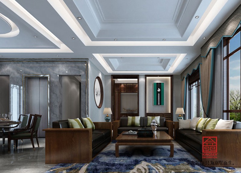 設(shè)計說明:此案例為石家莊金舍裝飾-西山林語303平米中式風(fēng)格裝修效果圖。新中式風(fēng)格將中國傳統(tǒng)文化的元素融入到現(xiàn)代人的生活環(huán)境和審美上的一種新型風(fēng)格,這樣的設(shè)計體現(xiàn)出傳統(tǒng)文化的元素,又能表達(dá)現(xiàn)代人對古典文化的喜愛?,F(xiàn)在越來越多的人開始喜歡這種風(fēng)格的設(shè)計,因為新中式是以現(xiàn)代人的審美需求來打造富有傳統(tǒng)韻味的事物,讓傳統(tǒng)藝術(shù)在當(dāng)今社會上得到合適的體現(xiàn)。開放式的廚房,最大限度提升業(yè)主對生活的熱愛和創(chuàng)想。