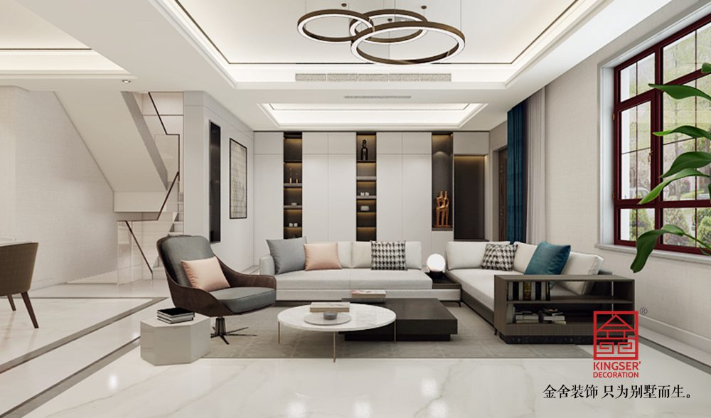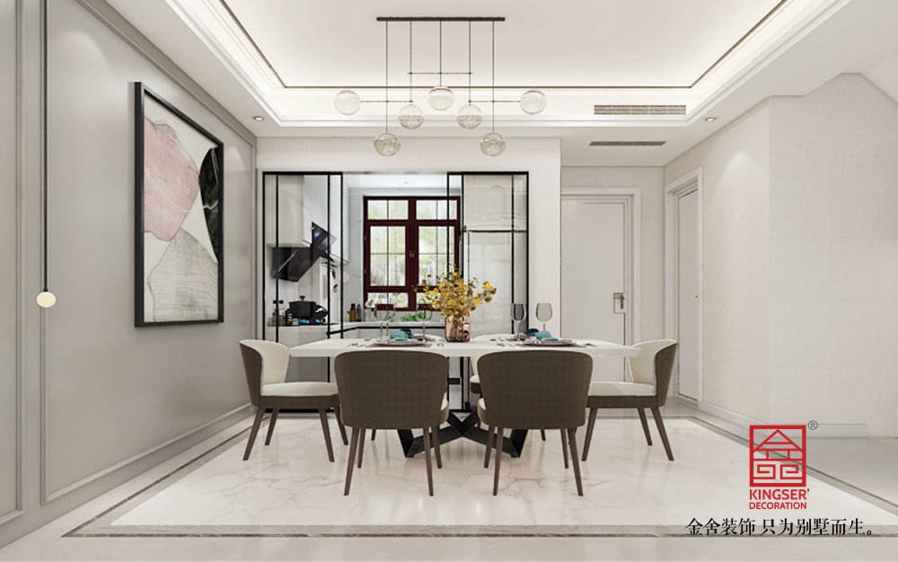 此案例為石家莊金舍裝飾-西山林語二期260平米極簡風格裝修效果圖。配色方案設計上沒有用過多的色彩,以簡單自然的顏色來劃分空間與局域,整體大多使用開放式的設計,整合生活空間,拓展空間視覺感。家具方面強調功能性設計,線條簡約流暢干凈.