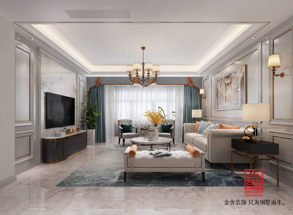榮盛和府194平米美式風(fēng)格裝修效果圖