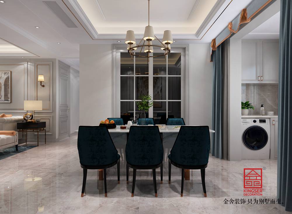-榮盛和府194平米美式風(fēng)格裝修效果圖。美式家居風(fēng)格的這些元素也正好迎合了時(shí)下的文化資產(chǎn)者對生活方式的需求,即:有文化感、有貴氣感,還不能缺乏自在感與情調(diào)感。低調(diào)奢華風(fēng)格注重硬裝修手法的簡潔,但也并不像一般的簡約風(fēng)格那樣隨意。在“低調(diào)奢華風(fēng)格”的空間里,看似簡潔樸素的外表之下卻常常折射出一種隱藏著的貴族氣質(zhì)。