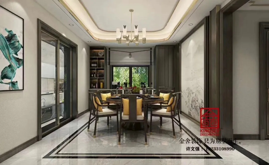 此案例為石家莊金舍裝飾-榮盛華府215平米新中式風(fēng)格裝修案例。新中式風(fēng)格傳承了傳統(tǒng)中式風(fēng)格的文化底蘊(yùn),又將現(xiàn)代審美融入其中,將含蓄內(nèi)斂的美學(xué)韻味徐徐呈現(xiàn)在了眾人面前,令人沉醉、留戀。似有靜謐、似含古韻,思想不禁浮想聯(lián)翩,無法掩飾一個(gè)人的精神世界,是心靈和性情的外化之地。中式元素與現(xiàn)代材質(zhì)搭配,既有文化的傳承又不會全盤固守傳統(tǒng),是現(xiàn)代的思想與千年來的文化彼此融合與碰撞。