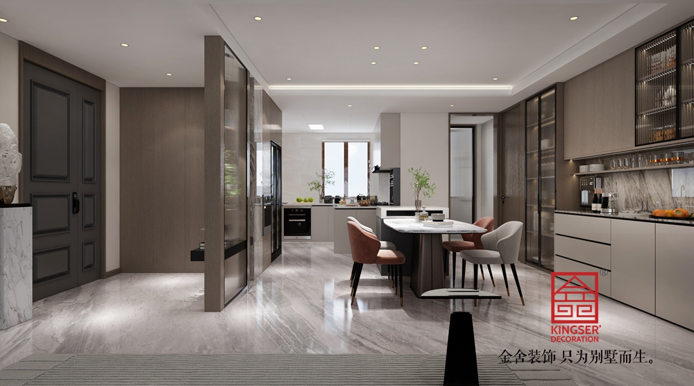 整個(gè)設(shè)計(jì)以簡約為主,通過簡潔的線條和色塊,營造出空間的通透感和層次感。同時(shí),細(xì)節(jié)處理上又十分考究,使得整個(gè)空間既不失品味,又充滿生活氣息。