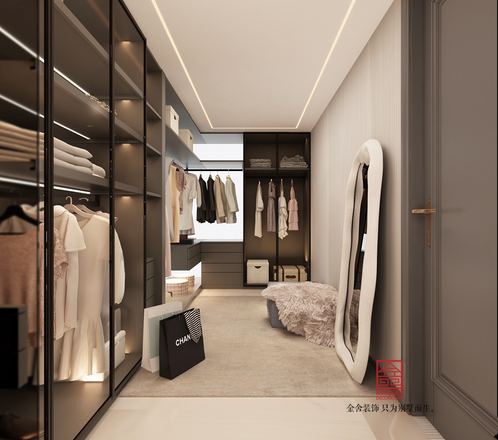 本案挑空客廳以新古典風格為基底,融合現(xiàn)代設計語言。運用經(jīng)典的石膏線、護墻板勾勒空間秩序,搭配簡約造型的家具與藝術吊燈,既保留古典的優(yōu)雅韻味,又注入當代的時尚與靈動,實現(xiàn)傳統(tǒng)與現(xiàn)代的對話。