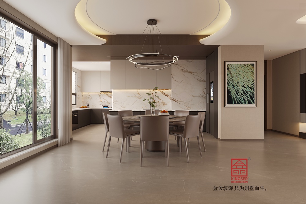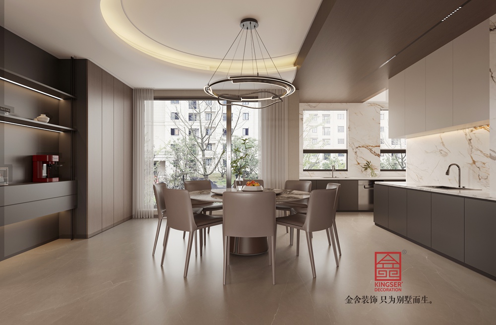 客廳里,優(yōu)雅、沉靜又治愈的氛圍順著空間動線蔓延開來。柔軟的轉(zhuǎn)角沙發(fā)承載著愜意而高雅的生活節(jié)奏,光影在其間流轉(zhuǎn),將日常時光細細浸潤。?