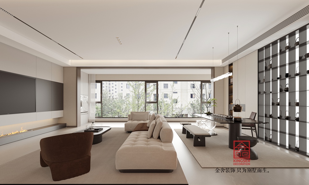 生活的儀式感總在不經(jīng)意間流淌,發(fā)光金屬柜里藏著各式器物,茶香裊裊中沉淀下心的寧靜,讓人沉醉在這份低調(diào)的奢華與雅致里。?