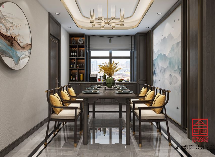 當(dāng)前位置: 首頁(yè) > 裝修案例 > 裝修圖庫(kù) > 榮盛御府186平米裝修-新中式風(fēng)格-餐廳